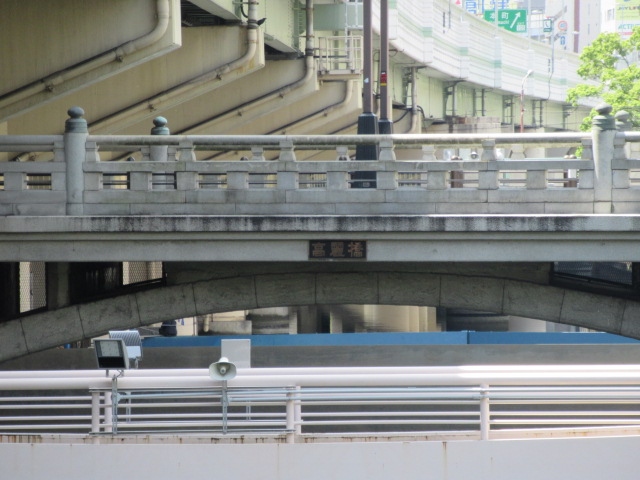 東横堀川の上には阪神高速が走っていてここもちょっと圧迫感を感じますが、三径間のコンクリートアーチ橋となって見応えもあります。「大手橋の碑」の説明もありますので是非見てください。- 旅行時期