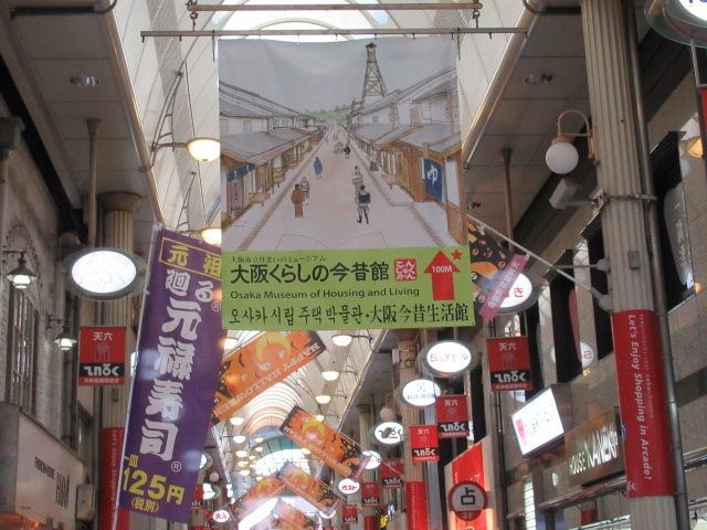 日本一長い商店街である「天神橋筋商店街」へ初めて行ってきました。大阪のキタやミナミにはたまに行くのですがこの商店街は初めてで天神橋1丁目から6丁目まであり本当に長ーいです。天六から地下鉄に乗ろうと思っていたのですが、直ぐそこにこの「大阪くらしの今昔館」があったので立ち寄ってきました。