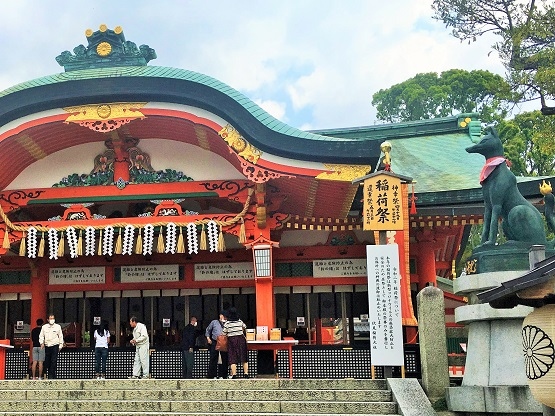 境内に入ると朱色の鳥居が続き社が建っていて狐が迎えてくれます。参拝してください。