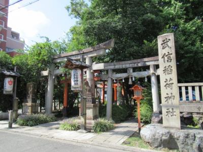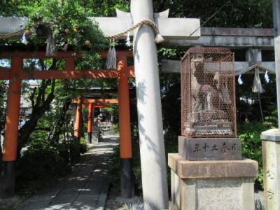奥には御本殿があり御神木も、右側には角倉稲荷大明神がありますが、高瀬川の開削で有名な角倉了以を祀っているようです。