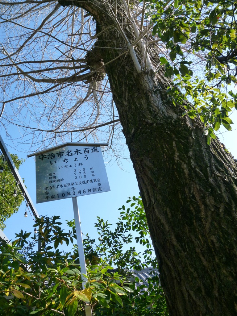 今回は宇治を散策しています。宇治橋通り商店街を抜け、駅の観光案内所でもらった地図を片手に「県神社」を探しましたが、わからないので建築中の家の左官屋さんに道を聞いたのですが、知らない、とのこと。あまり有名ではないのかぁー。と思っているところに眼の前に現れました。いまはちょっと寂しい気もしましたが、ここは創建1052年の歴史ある神社で、家運隆盛と商売繁盛、また結婚、安産の守護神としています。境内には見事な宇治市名木百選「いちょう」の木がありました。宇治訪問時には立寄ってくださいね。6月に行われる県祭には来たいとおもいます。