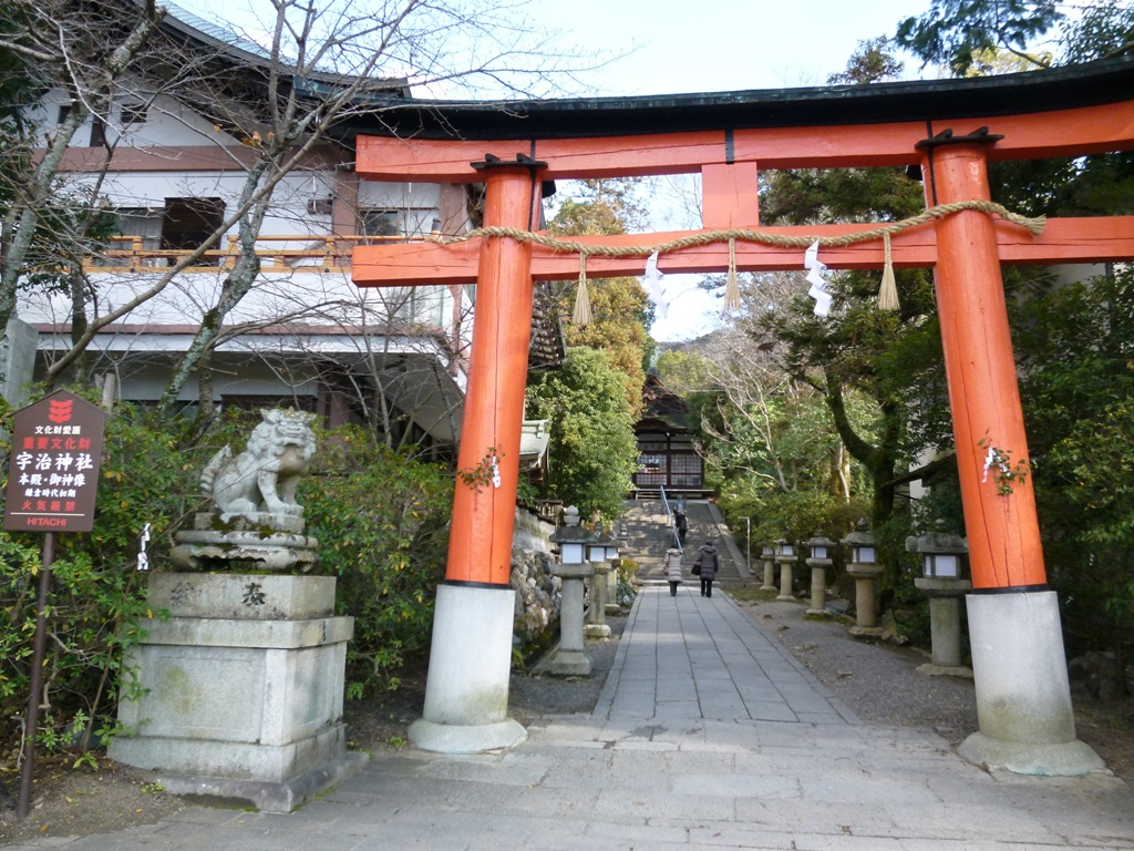 今回は宇治を訪問しています。コースはJR宇治駅から平等院へ宇治公園を抜けて宇治神社など散策し京阪宇治までです。宇治公園の中之島を抜け宇治上神社に来ました。まず目に付くのは「世界文化遺産」と難しい書体で書いてある石碑です。うんーちょっと迫力があります。今日はずいぶん歩き疲れました説明は省略で写真で勘弁、今年も良いことがあるように参拝し戻ります。宇治観光スポットです。