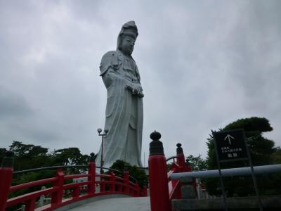 今回の旅は、富岡製糸場です。レンタカーを利用したので、ついでに高崎付近一帯をドライブしています。以前からこの辺に大きな像があるとは知っていましたが、ここ慈眼院(高崎白衣大観音)だったんですね。カーブの多い坂道を登っていきます。1936年に鉄筋コンクリートで建立されていますが、見ての通り白衣観音らしく白色です。平日はすぐ近くの駐車場まで登れますよ。高崎白衣大観音像として有形文化財に登録されているようです。