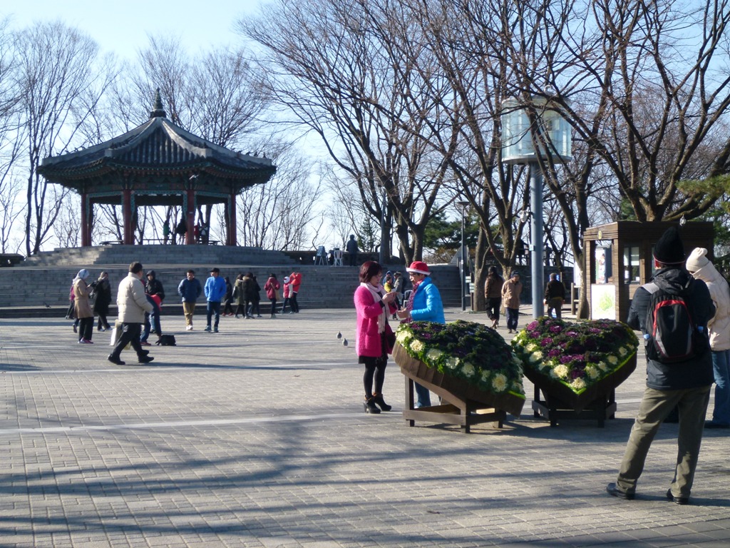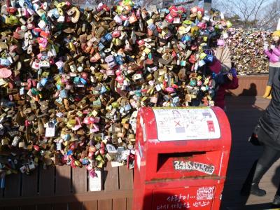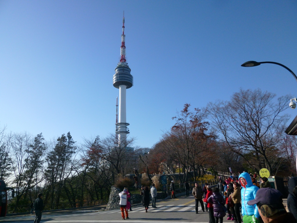 「ソウルシティツアーバス」で周遊し途中下車し行ってきました。街中でみるNタワーは小高い山の上に立っていますが、バスでグングンと登っていきます。頂上の駐車場は狭く観光バスで一杯です。なので、ちゃんとしたバス停に停車しませんので、帰りの際はバスに乗り遅れのないように注意してくださいね。市街地でも寒かったこの日、頂上はもっと寒かったです。しかし、360度のパロナマでソウル全域を観ることができました。きっと夜景は抜群でしょう。夜の訪問をどうぞ、しかいこの時期寒いです。もちろん、レストランや売店もあります。