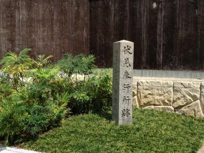 この伏見は今も昔の町家や街並などが残るところです。今もそのなごりがあり沢山の石碑が残っています。「材木小屋跡」は、寺田屋で負傷した「坂本龍馬」が難を逃れ身を隠したところとされています。材木小屋はこの石碑の東南約500mのところにあったようです。場所は大手筋をどんどん西へ、大手橋を渡り右手です。さらに先には、映画など出てくる有名な「松本酒造の酒蔵」があります。散歩コースに最適です。