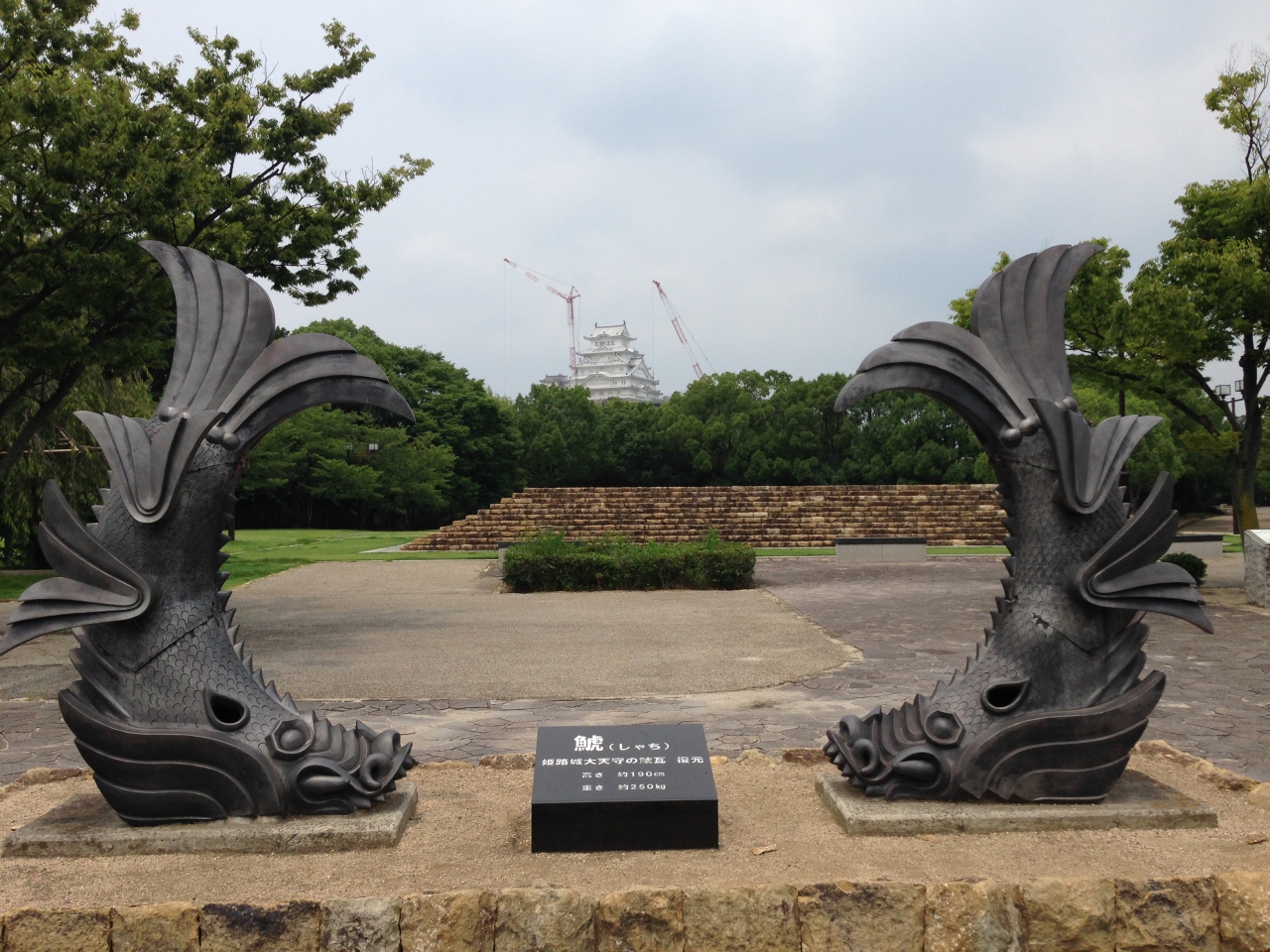 姫路駅を降りて、北側真っ正面み見えます。メーン通りの東側にあるアーケード商店街を北へ歩きます。姫路城は現在、修復工事中です。外壁はほぼ完了しているのでしょうか、真っ白です。白鷺城と言われているので、これでいいのでしょうか。年月経つと屋根は黒っぽくなっていくのでしょうか。当時を姿はどうでしょう。。。