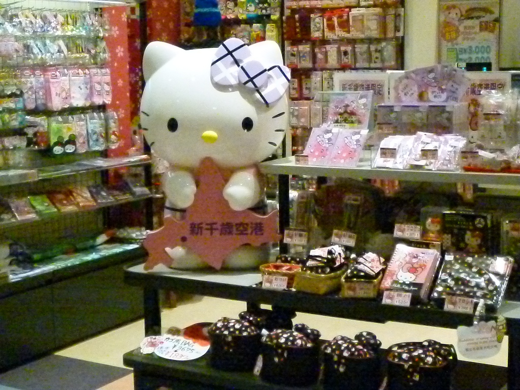 新千歳空港の3階、国際線への連絡通路にある「ハローキティショップ」があります。主要な空港では良く見るショップですね。店内は、言うまでもなく「ピンクピンク」しています。お菓子やちょっとした小物、お土産は豊富です。キティちゃんが店頭でまっています。