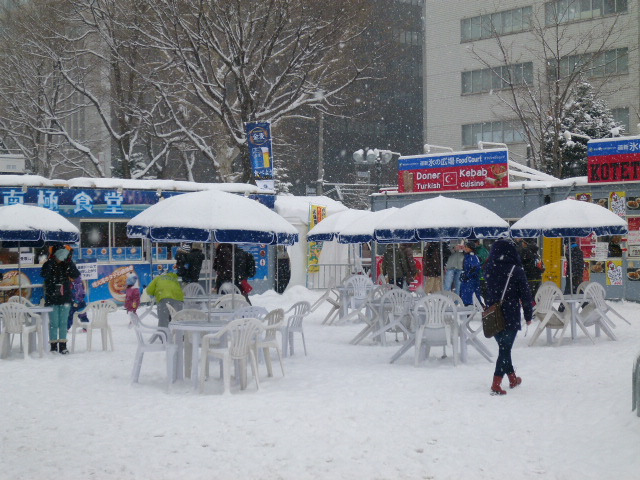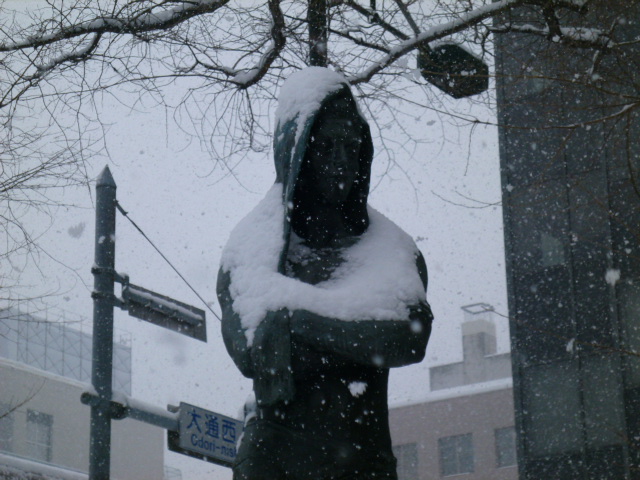 今日は、大通公園の「雪像」、すすきのの「氷の祭典」や観光地周りをして疲れました。夕食をし一杯飲んで、バタン、キュー、です。しかし、夜の「イルミネーション」も綺麗ですね。大通公園のネオンも綺麗ですが、駅前のネオンもとても綺麗です。私はテレビでみてまーす。