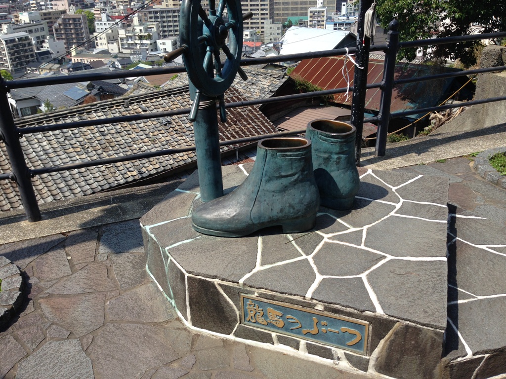 この一帯の見学は、「風頭公園」から「亀山社中」付近を見学し、最寄りの路面電車駅にでるコースを選びました。観光地は山の上にありますので、歩くのは下った方が良いです。龍馬が設立した日本初の商社と言われていますが、展示品などは、もうひとつ・・・貿易に関する資料、説明が欲しかったです。