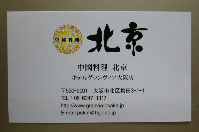 ちょっとした会合がありましたのでここで食事しました。場所は、大阪駅構内のホテルグランヴィア大阪の19階にあります。エレベータを降り直ぐ右側です。迷わずいけますよ。19階だけあって眺めは良いですね。オーダーバイキングを頂きましたが、本場北京で食べた北京ダックと違って皮だけ、しかしカラッと揚がっていて大変美味しかったです。好みのメニュー食べ放題は良いですね。お変わり盛りだくさん。しかし、ビールはちょっと高かったです。