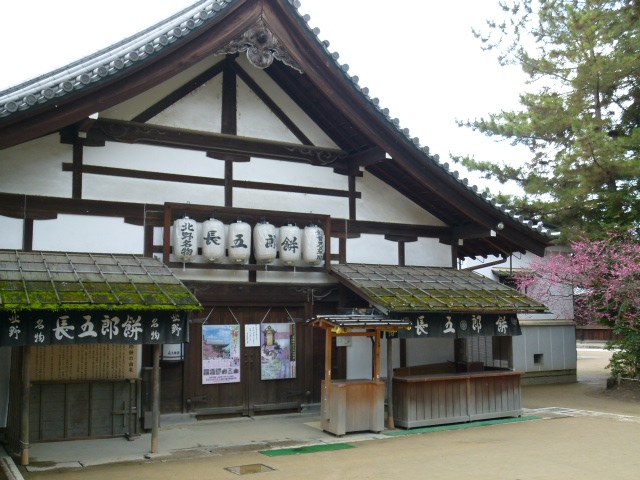 今日は残念閉店です。ここ北野天満宮の境内にある「長五郎餅」は、毎月25日だけの販売だそうです。また、3月25日までの土、日曜日も販売しているようです。煎茶付の餅セットなどあるようです。時期を見て販売日にまた来ます。