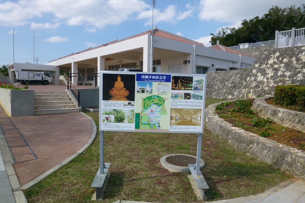 那覇市内からずいぶん走りました。ひめゆりを訪問し次はここ「平和祈念公園」です。沖縄南部は特に戦争の激戦地だったところですね。沖縄戦は軍人だけではなく、多くの一般住民が犠牲になっています。ここに犠牲になった方たちを弔い、この歴史を全世界の人びとに正しく伝え、平和願うために平和祈念資料館を設立されました。公園内は広く資料館や祈念堂などがあります。