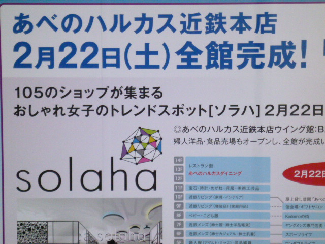高さ300mの日本一高いビルの「あべのハルカス」が完成しますが、そこに新しく開業する「あべのハルカス近鉄本店」がオープンします。となると現在の近鉄百貨店は、過去の百貨店となりますね。残念。しかし、大阪の発展の為、お客様の笑顔の為、あべのファィト!!!