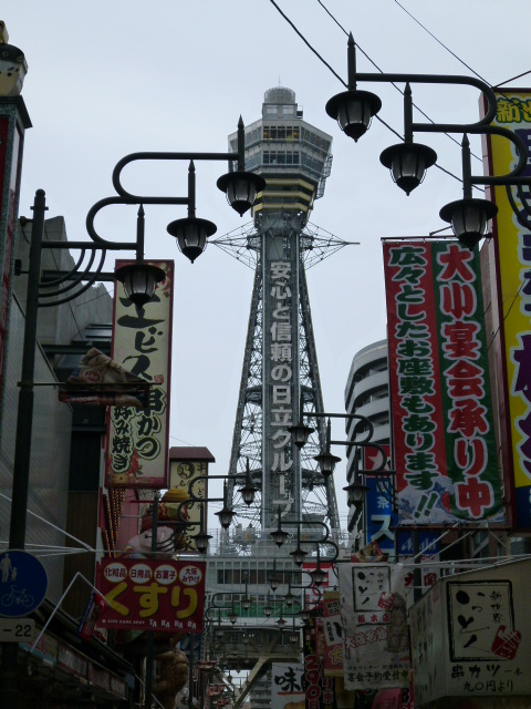 東の「スカイツリー」、西の老舗の「通天閣」です。東京スカイツリーができて、タワーブームとなり、この付近の観光客が増えた、との話もききます。良いことですね。入場料金は安いし、高さがそう高くないので下界が良く見えます。コストよし、品質よし、です。また、ピリケン広場や筋肉マンミュージアムも観覧できます。西の勝ちです。