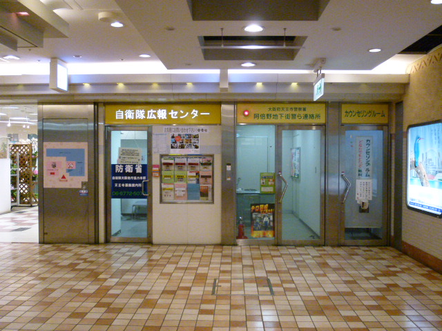 天王寺動物園の入口広場の北側にある交番です。広場には近所のおじさん、おばさんが将棋や、たむろしています。あまり良い光景ではありません。中国人らしい観光客がお巡りさんに「一緒に写真を」と言ってましたが、お巡りさんは断っていました。とうぜんです。安全を守るのが仕事です。