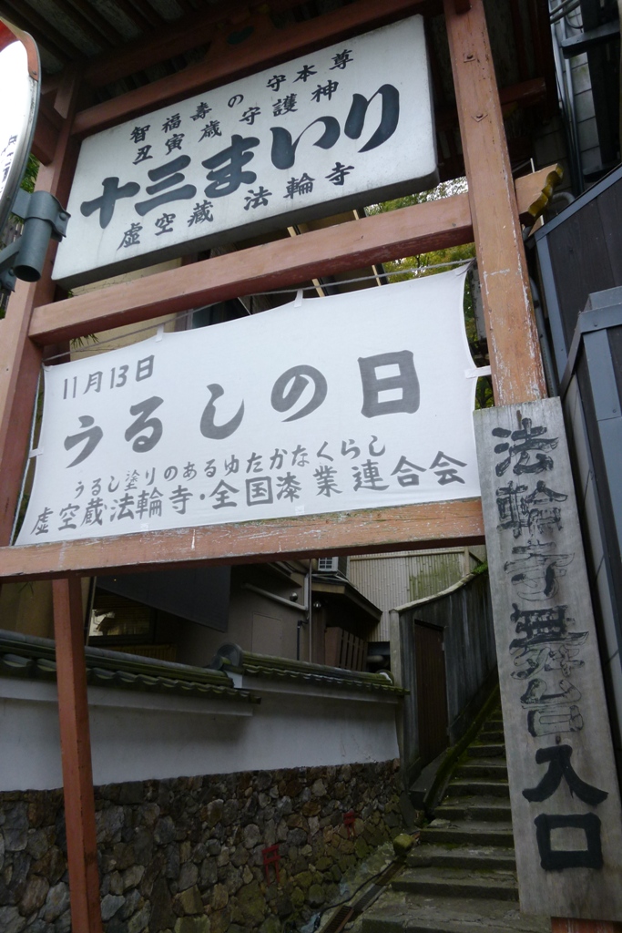 嵐山には数回来たことがありますが、見るのはいつも中之島や渡月橋の散歩です。皆さんも同じだろうと思います。今回大発見しました。この法輪寺の展望台からの嵐山や渡月橋など一望できます。渡月橋南詰付近に「法輪寺舞台入口」と看板があります。ここから昇って行きます。眺めがいいですよ。