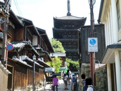四条から五条の東山付近で、大きくそびえ立つ「五重の塔」が見えます。説として、聖徳太子創建との噂もありますが、疑問もあるようです。中には入れない狭い境内です。その分、他の多くの範囲から見えますので楽しむことができます。京都の絵になりますね。