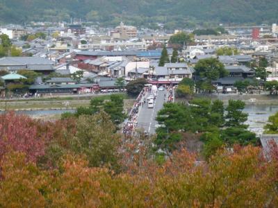 台風で多くの被害を受けましたが、復旧していると、TVなどで聞いています。ほとんどの店舗が営業し、もとの姿を取り戻していますね。今後、紅葉シーズンも真っ盛りとなり更に観光客も増えるでしょう。写真は渡月橋を上から見ています。