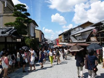 ちゃわん坂ってあるんですね。正式名は「清水新道」って言うのでしょうか。有名な清水焼の本家だけあって、陶器屋さんがずらりと並び多く見られました。古い骨董の店から現代にあった、可愛い陶器日用品まで多く品々を販売しています。見るだけでも楽しいですね。
