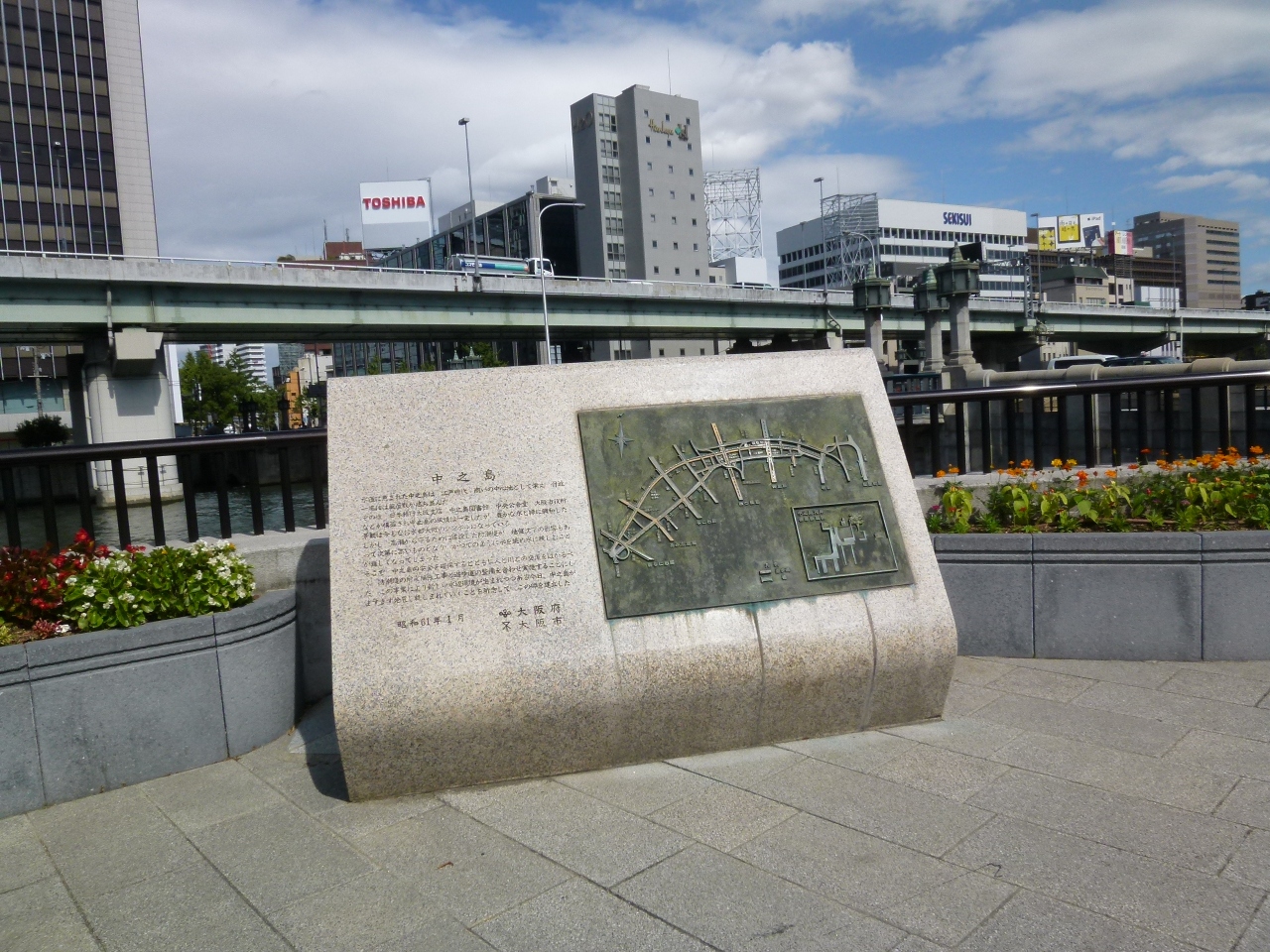 この中之島付近には、数多くの橋が架けられています。知っている「淀他橋」や「天満橋」結局、曲のタイトルなどで知っている橋ですが、その他の橋はあまり知りません。ここは淀屋橋から中之島を挟んで北側にある橋です。ちょうど「市役所」の北側に位置します。さぁ、梅田まで歩いて行きます。