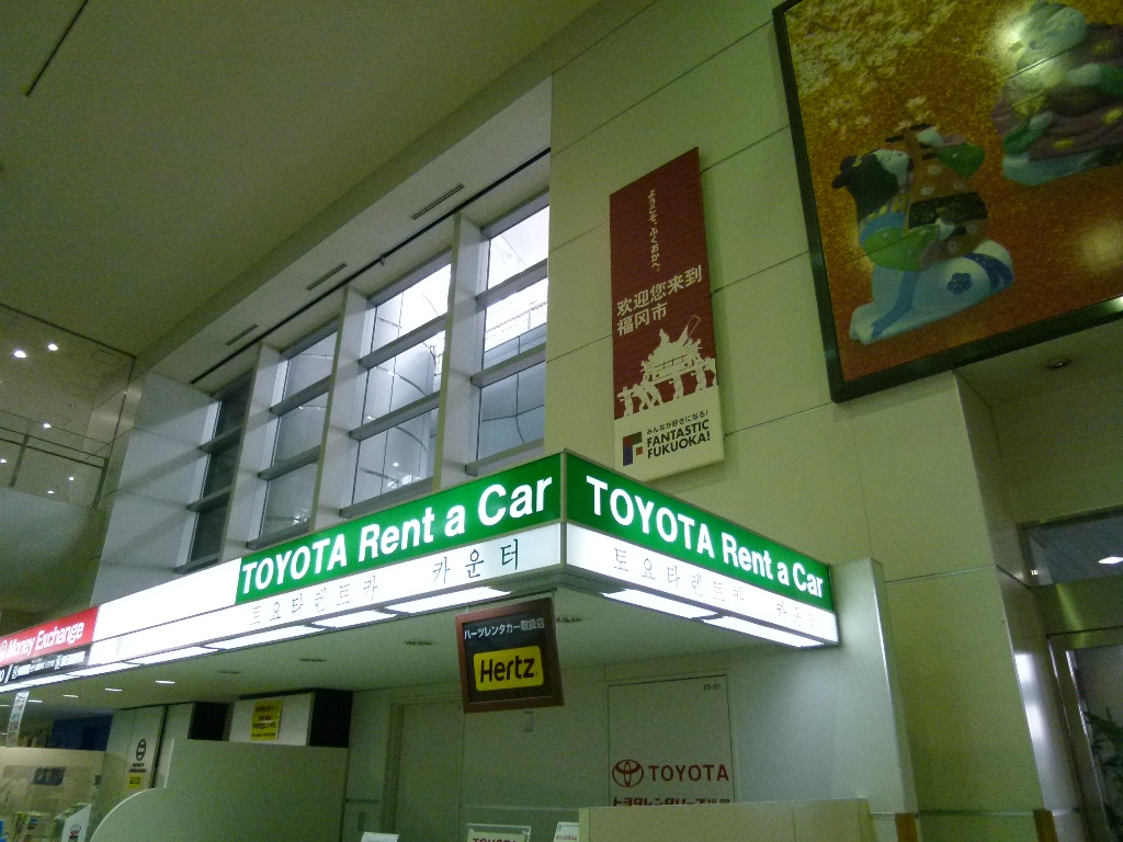 九州は新幹線など鉄道が発達していますね。鉄道あり、高速道路が充実し高速バスも良いですね。しかし、小回りが利くようにと、レンタカーを利用したくなることもあります。ターミナルビルの1階に受付のカウンターがあります。便利な福岡空港から出発し目的地へ、GOGO、。。。
