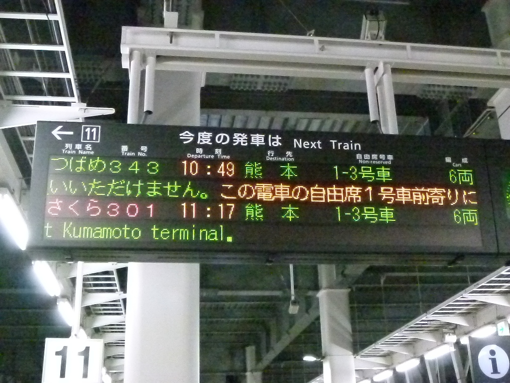 九州新幹線ができてとても便利になりました。以前は大阪から寝台列車で移動したものです。「さくら」と言う寝台列車があった記憶があります。「明星」などもありましたでしょうか。新幹線つばめ同様に全体が白で清潔感が感じられますね。熊本・鹿児島方面へGOGOーです。