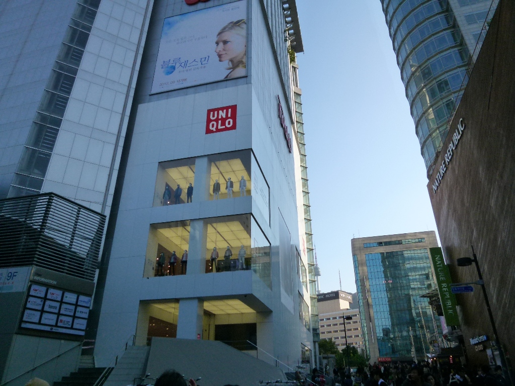 明洞の街を散歩しているとありますね。見慣れたでかい看板です。目立ちます。品ぞろい、価格も日本とあまり変わりません。特にここで買おうとは思いませんね。長期滞在で着替え不足の場合は良いかもしれませんが。。。いえ、南大門のほうが良いかも。。。