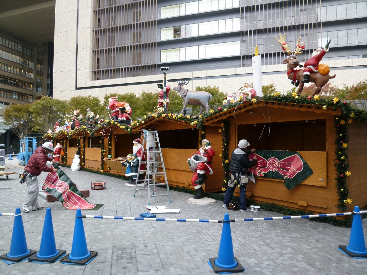 前回訪問した時は、モアイ像の展示がありましたが、今日はありません。その代わりにおじさんたちが、年末の準備として、家の上に登ったサンタクロースなどのクリスマスの飾り付けを造っていました。きっと素晴らしいクリスマス・イベントとなるでしょう。