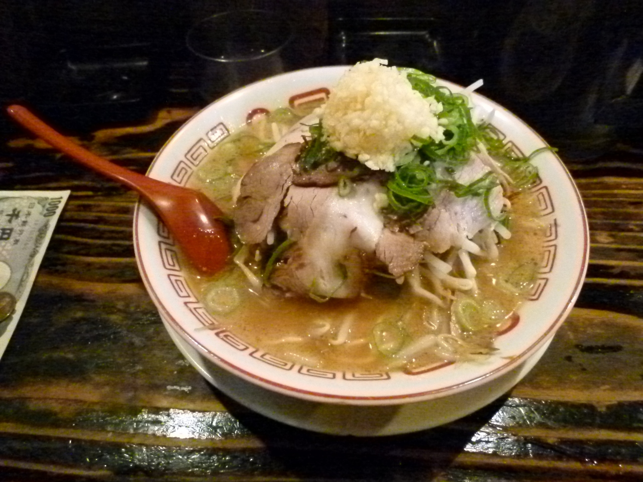 「お初天神」でお参りし、商店街を北へ歩いていると、繁盛している[ラーメン屋」がありました。あまり聞き慣れないお店ですが、お腹も減り、きっとおいしいかな、と思い初めて入りました。トッピングした、もやし「多め」が多い多い、びっくりです。また10円トッピングの「ニンニク」を追加しました、臭い臭い。美味しかったです。とんこつ醤油味です。