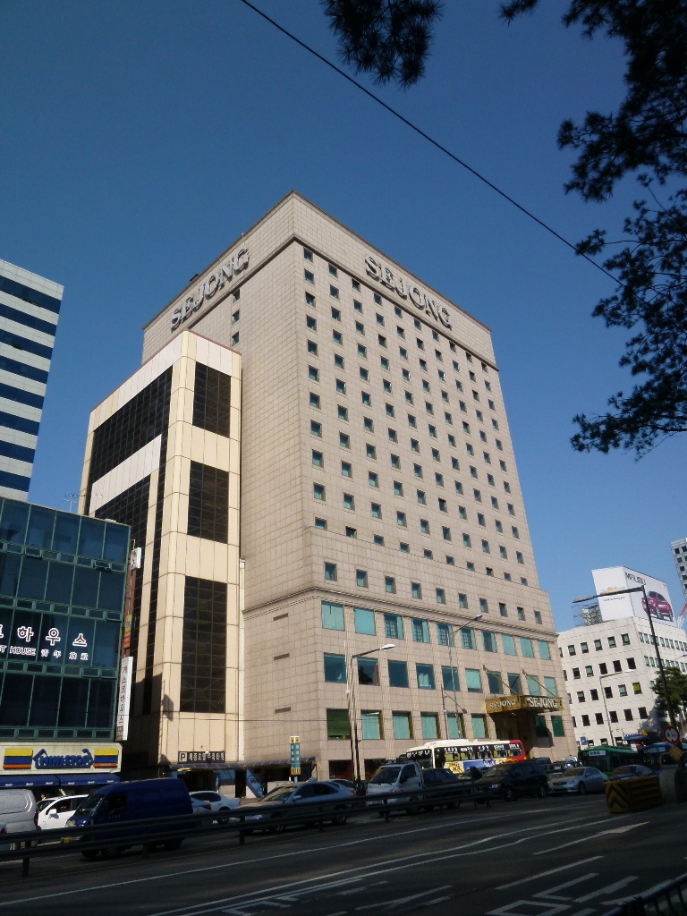 とても便利なところにありますね。地下鉄明洞駅の目の前で、空港リムジンバスも直ぐそばに停車します。空港への方法として空港鉄道もあるのですが、乗り換えなければならないし、少々高いですが寄り道したバスで外を見ながらも良いですね。最大の繁華街明洞の南側に位置し、食事、買物、観光にも便利です。ホテルの料金はちょっと高いかな、と思いますが、立地から考えるといいところでしょう。。。