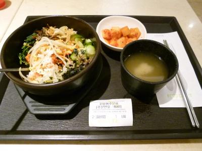 韓国で有名な百貨店ですね。日本で言うと三越?松坂屋?と行ったところでしょうか。。。土産は南大門や明洞の繁華街でもう買ったし、免税品は興味ないし、行ったけど日本人でいっぱいです。歩き過ぎて腹減ったのでフードコートへ行き、8000ウォンのビビンバをいただきました。ちょうど昼時だったので混雑していましたが、美味しかったですね。
