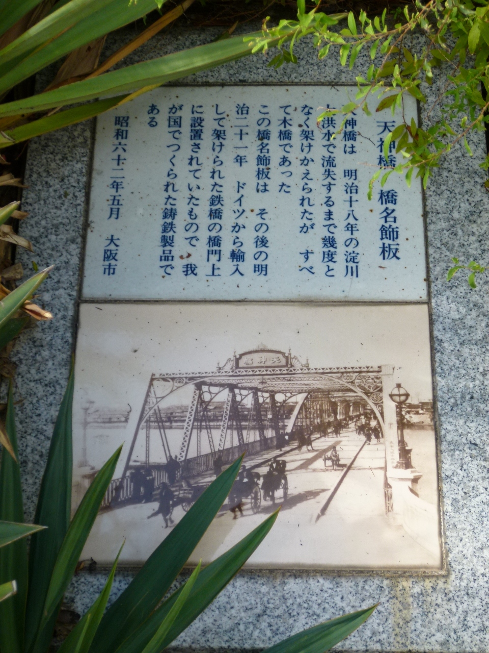 南天満公園から歩いてきましたが、河川からみる「天神橋」は、とてもどっしりしていますね。明治初期までは木造だったようですが、水害により崩壊、現在の鉄橋になっています。この橋の中央から中之島に入ります。バラ園もあり、とても良い散歩コースです。