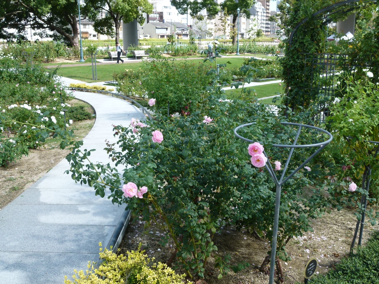 都会の中に、また憩いの中心の中之島に、こんな立派なバラ園があります。もちろん無料です。時期外れに来たので、あまりその姿は見れませんでしたが、初夏には多くの花が咲き、大勢の見物客でにぎあうことでしょうね。