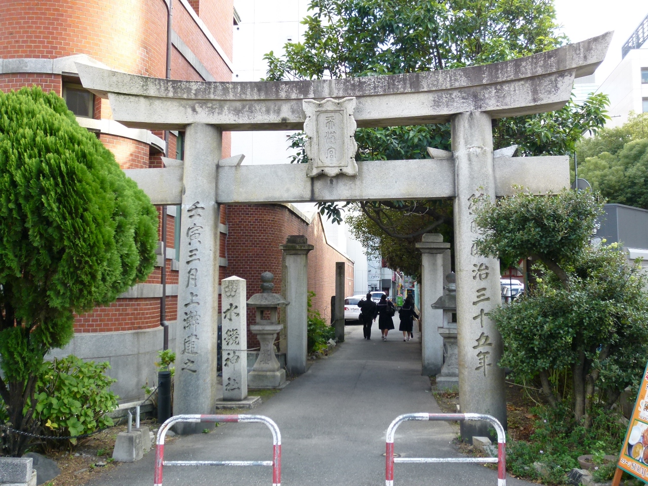 JR博多シティアミュプラザの屋上に造られたつばめの杜ひろばにあり、参道に続く一の鳥居、二の鳥居、三の鳥を潜ると鉄道神社はあります。居旅の途中、旅の安全を祈願して参拝。こちらの鉄道神社は魔除け、良縁にもお勧め。人は誰でも災難から身を守りたいと願うものですね。