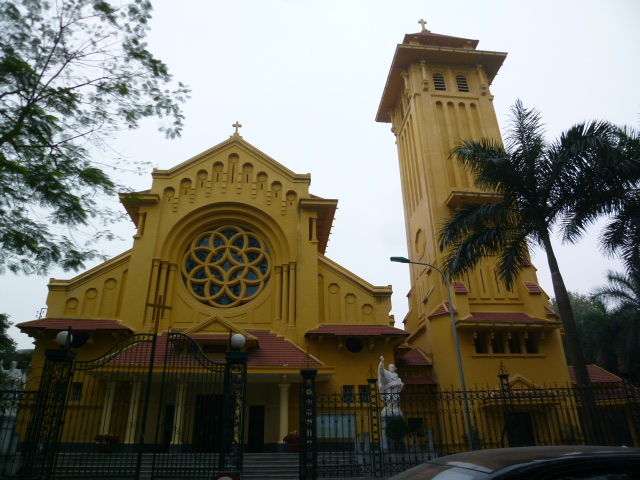 1933年のフランス植民地時代に建てられた西洋造りの教会ですが、屋根は瓦で出来ているのは珍しいのではないでしょうか。現在のハノイにない色調の造りになっているのが特徴です。