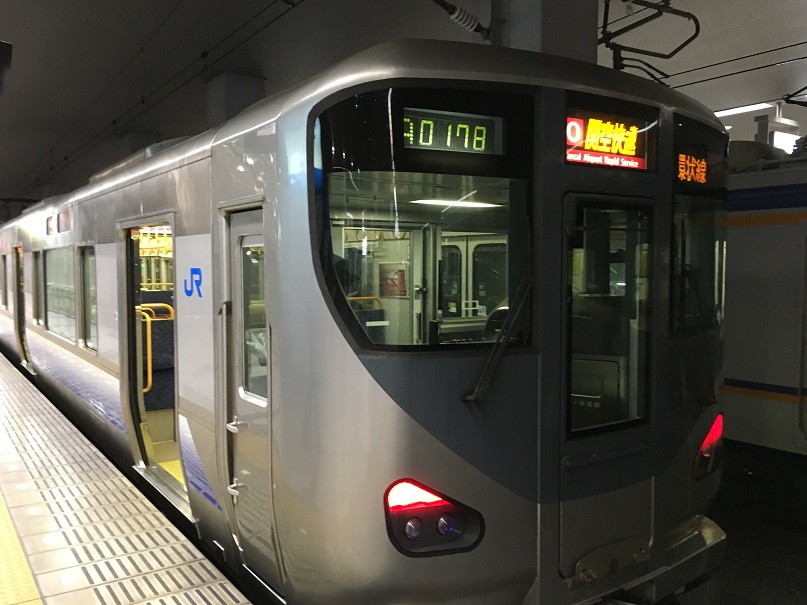 大阪市内と関西空港とのアクセスは、リムジンバスや南海電車、はるかなどありますが、大阪市内をぐるーと回っている環状線からは、この関空快速が一番便利です。乗り換えなしで関空へ到着です。