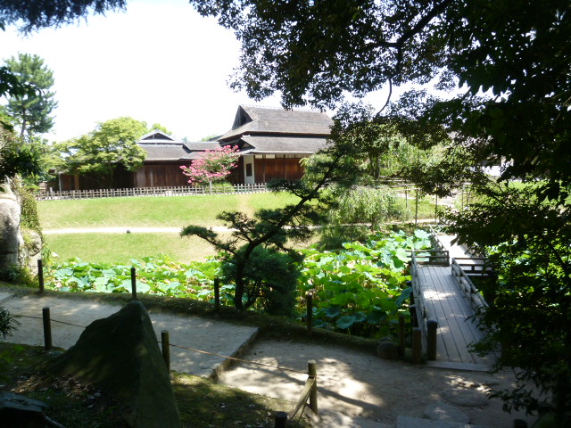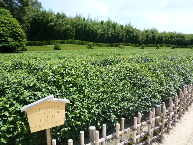 今日は日本三名園のひとつである岡山後楽園を散策しています。ずいぶん歩きました。茶畑を過ぎ「千入の森」へやってきました。この辺はそう建物はなく自然がいっぱいの緑あふれる綺麗に整備された農道を歩いているって感じです、ここ「千入の森」は紅葉が植えられていて秋には素晴らしい景色が見れます。まだ時期ではありませんが青々とした葉が出番を待っているような気がします。また隣には桜林そして梅林があり散策路続きます、園内では四季折々の姿が楽しむことができます。隅から隅まで散策してくださいね。