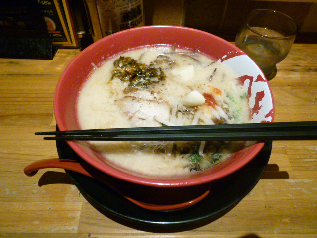 今日は大阪・ミナミをウロチョロしています。すると美味しそうなとんこつの匂い、これにひかれて「まこと屋 心斎橋店」に入りました。場所は御堂筋沿いにある三津寺の向かい南側にあります。間口が狭く町屋スタイルの店です。牛醤ラーメンを注文、白濁したスープが良いですね。スープはまろやかと言うか優しくのどに入りやすいですね。にんにくたっぷりであっという間に完食です。とんこつ大好き人間ですが、牛醤ラーメンも良いですね。おススメです。