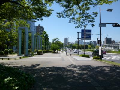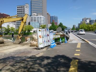今日は広島の平和記念公園を散策しています。そしてひと通り散策し「平和大通り」に出てきました。平和記念公園の南側を片側二車線で東西に走っていて、車道の両側には緑地帯と幅広い歩道があります。緑あり余裕を持った広い空間なので、走行しやすく、また歩きやすい道路となっています。一部平和大橋の工事をしていて工事後は更に通行しやすくなるようです。ここから広島駅行きのバスがありますので、路面電車の原爆ドーム下車から散策出発したこのコースは最適かもしれません。バスに乗車し広島駅に行きます。