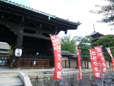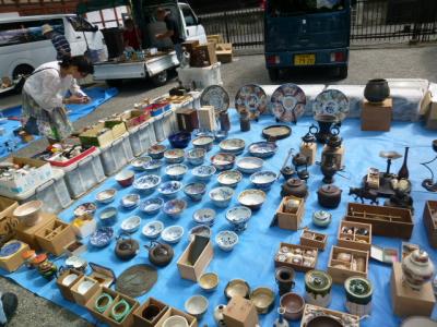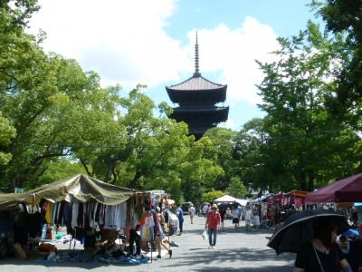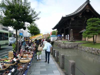 今日は9月の第一日曜日です。この日東寺境内で「がらくた市」が開催されています。九条通りの南大門を入ると目の前に現れてくるのは数多くの露店、約100店舗ぐらいでしょうか。名のように一見「がらくた」と思える品々、骨董や貴金属、おもちゃ、貨幣、反物など生活用具も販売しています。外国人も思ったより多く日本にしか見られないデザインの食器や置物を買っていましたね。今では見られない蓄音機でコロンビアのレコードをかけていました。雑音はありますが懐かしく感動しました。奈良から毎月来て露店を出しているようです。(写真とればよかった)
