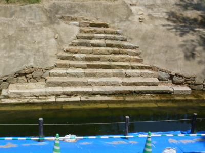 今日は日本三名園のひとつである岡山後楽園を散策しています。南門から入って右回りに周遊しますが、直ぐそこに「御舟入跡」があります。見るからに船着き場のようです、よくよく確認すると、藩主が城から舟で渡ってきた時の舟着場の跡、とのことです。そうでしょうね、舟を降りて上って行く階段がありますからね。と言うことは、当時水流は旭川と繋がっていたのでしょうね。さぁー直ぐ横に「地蔵堂」があります、お参りして先に進みます。二色が岡は少々深い森となりますので薄暗い日などには注意してくださいね。