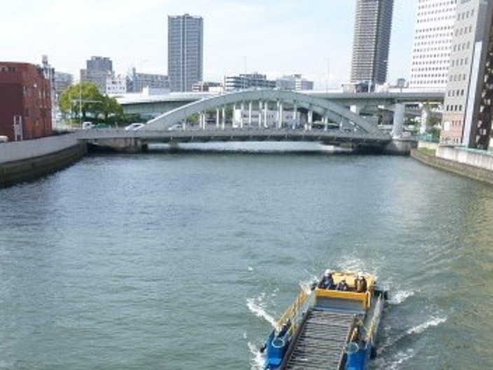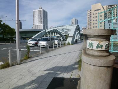 今木津川に架かる「木津川橋」にいます。この辺はいろんな川が合流しているようです。中之島方面から流れる堂島川と土佐堀川が合流する安治川、そして土佐堀川から分岐している木津川に木津川橋は架けられています。隣にある頑丈そうな昭和橋と比較すると迫力はなく普通の橋のように見えます。しかしこの橋は1868年に架けられたのがはじまりで、付近には川口運上所(税関)を開設し繁栄をもたらした歴史的重要な場所でもあります。また西詰付近には大坂船手会所跡がありますので合わせて散策されてはいかがでしょうか。