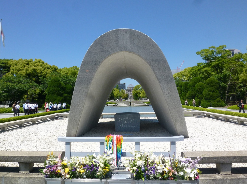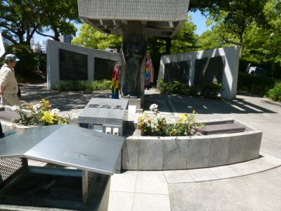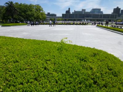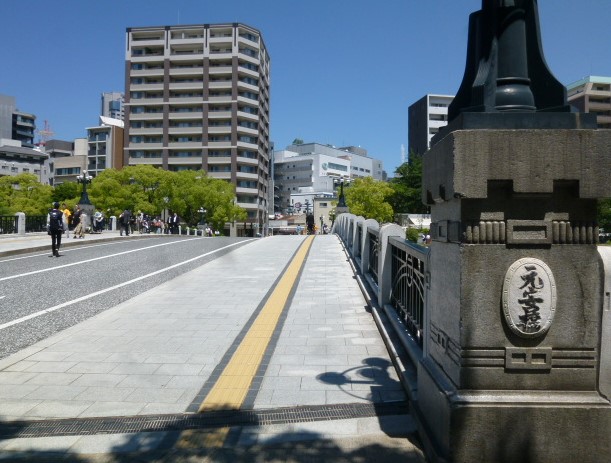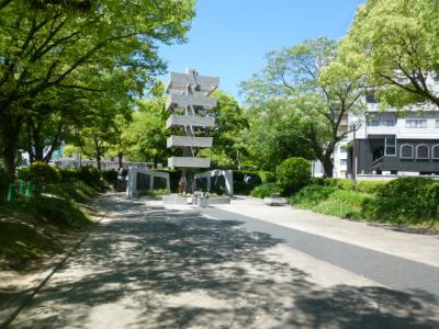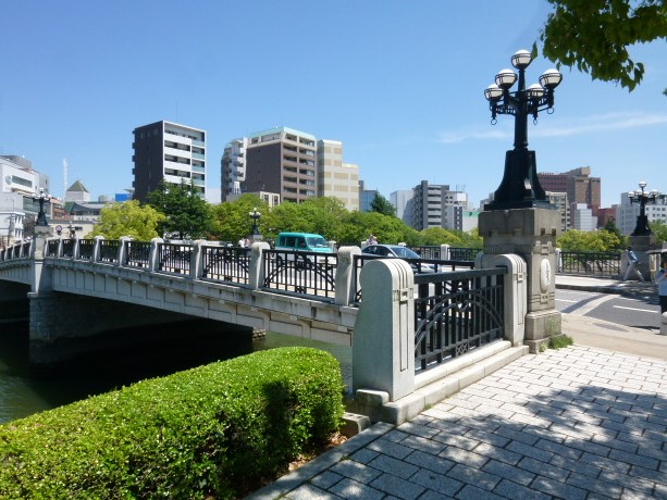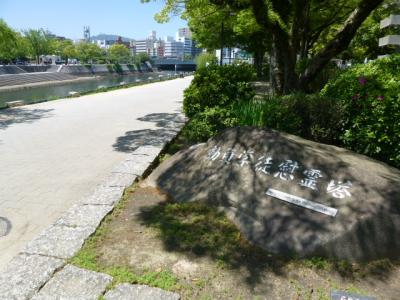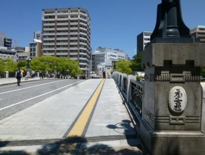 今日は広島にある平和記念公園を散策しています。原爆ドームを見学し元安川に架かった「元安橋」を渡って公園へと入って行きます。この橋はもともと、毛利輝元が城下を造った時に架けられたのが始まりで、被爆した橋は1926年建築でオシャレな照明灯が設置されたようです。現在の橋は1992年に架けられた橋ですが、照明灯など飾りつけられ趣のある橋となっていますね。また、元安橋からの原爆ドームや流れる元安川などの景色を観ながら歩行もできる幅広い歩道があるので安心です。さぁー公園内へ入って行きましょう。