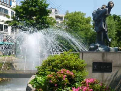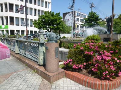 今日は岡山を散策しています、そして駅地下の「ももたろう観光センター」での情報をもとに桃太郎大通りを歩いて岡山城へ向かうこととしました。すると数分で綺麗な花など見えそこに「西川緑道公園」があります。そこには小川が流れていて西川と言うようです。へぇ―西川? 大通りを横切るように流れ遊歩道もあります、噴水が出て草花が綺麗に咲き整備されています。今は時期ではありませんが桜の木も植えられています。モニュメントも設置されていて散策路として利用されているように思います。是非立ち寄ってくださいね。