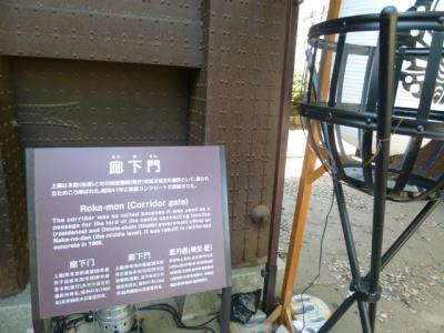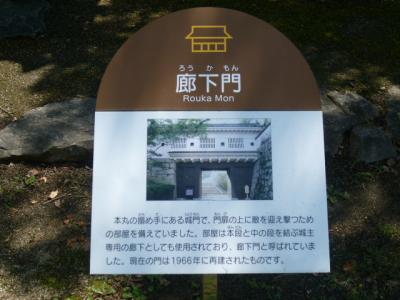 今日は岡山城を散策しています。現在残っている烏城公園岡山城はそう広くありません。しかし現存する月見櫓や再建の天守などがあります。そしてこの「廊下門」も1966年の再建ですが当時の姿を表しています。表示板には次のような文章が書かれています。