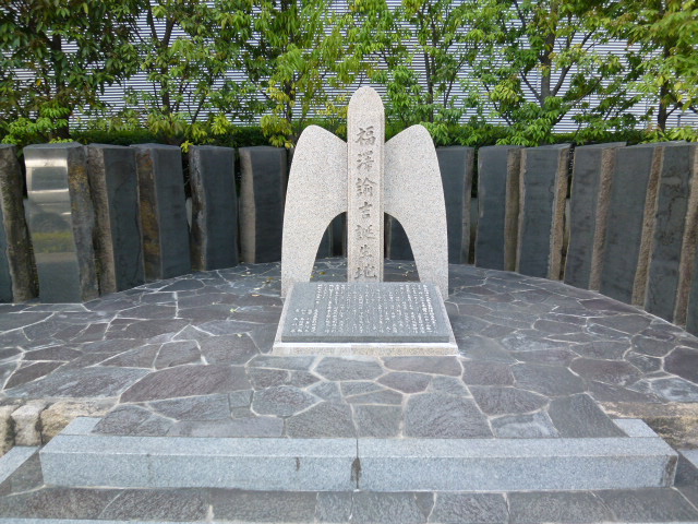今日は大阪中之島付近を散策しています。中之島には多くの橋が架かっていて、ここなにわ筋の玉江橋もそのひとつです。ぶらーとしていると「福澤諭吉誕生地記念碑」が朝日放送の南側で玉江橋北詰に立っていました。福沢諭吉と言えば1万円札で有名ですが、学問のすゝめ」の著者としても有名です。記念碑には「天は人の上に人を造らず人の下に人を造らず」と書かれ人間は平等であると残しています。中津藩士の生まれだったんですね。大きな記念碑で整備されています。立ち寄ってくださいね。