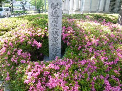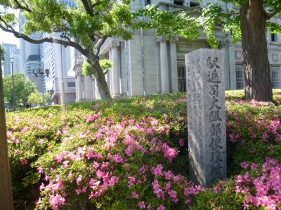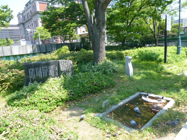 今日は大阪中之島をぶらっとしています。そして「大阪通商会社為替会社跡」は、赤煉瓦造りの中央公会堂の南側にあります。周囲は草花が覆われていますが、石碑部分は整備されているのでそれを確認することができます。大阪通商会社・為替会社は明治2年にこの地に設立されましたが、そううまくいかず廃藩置県なども重なって終止符に至ったとのことです。しかしながら近代社会へと繋がる役割を果したとは間違いありませんね。ここにも大阪の先駆が見れました。