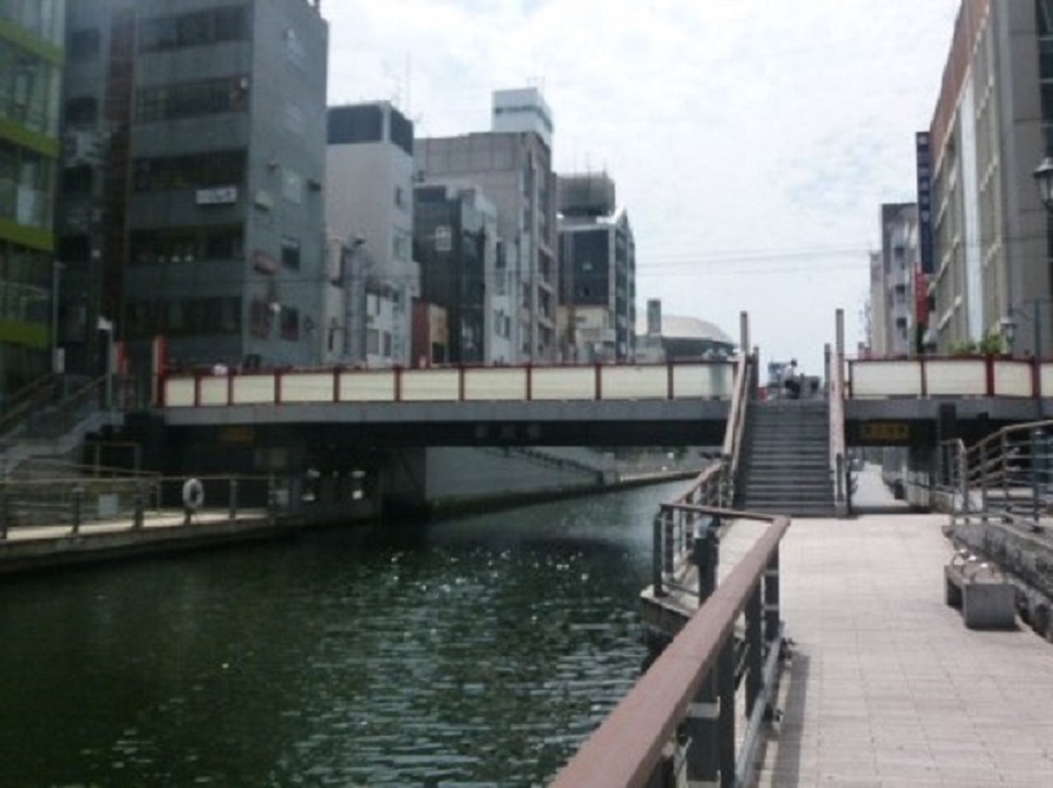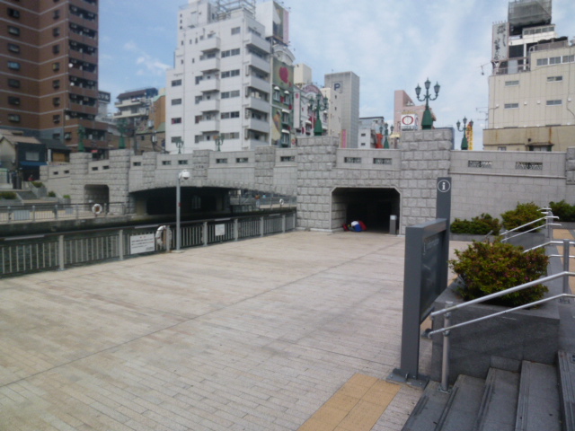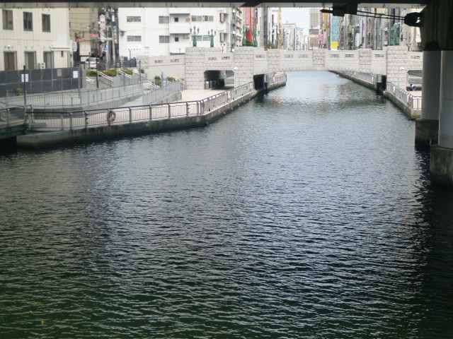 大阪ミナミには時々きますが今日は行ったことのない道頓堀川を道頓堀橋より西へ散策します。道頓堀橋より直ぐ西に架かる橋が「新戎橋」です、東にある「戎橋」とは対称的な位置にありますが、まったく行き来する人が少なく活気が劣ります。橋幅は狭く一歩通行ですが歩道はちゃんとあり大丈夫です。道頓堀川の遊覧船コースにも入っていて、また遊歩道もあり雰囲気は良いですね。遊歩道を西へ散策します。