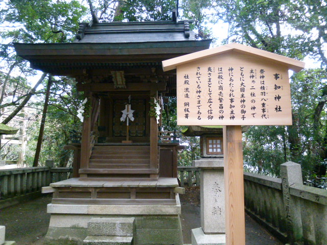 今日は香川県琴平にある「金刀比羅宮」にきています。頂上の本宮まで785段とのことですが、652段の真須賀神社から最後の785段までは長い階段となります。その石段は4段階に分かれていて、その途中に二つの社がありその手前ひとつが御年神社となります。御祭神は、大年神・御年神・若年神とのことで、農作穀物を司る神で、社殿は流造、銅板葺で風格がありますね。もうひとつの事知神社も覗いてみましょう。
