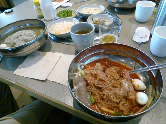 今回は韓国・ソウルの旅でした。カジノはやられましたが、史跡などを散策し満足です。さぁー空港へ行きます、ソウルへの行きは約1500円のリムジンバスを利用しましたが、帰りは列車を利用します。地下鉄空港鉄道で行くと約450円で行けるのですが、ちょっとカッコいいノンストップの特急約800円に乗車です。乗り場はここソウル駅の北側(裏側)の地下でエスカレータで下っていきます。例えば東京駅だと土産物やレストランは地下にあるのですが、ここソウル駅は地上のビルに集中しているようです。隣には土産物で有名なロッテマートがあります。ちょっと腹が減り、帰りの時間があるのでエレベータを登りレストランに入り、冷麺をいただきました。麺は細長くもっちりで歯でなかなか切れません、もうひとつ。ビビンバにしたら良かったと反省です。指紋認証のコインロッカーもあります、利用くださいね。